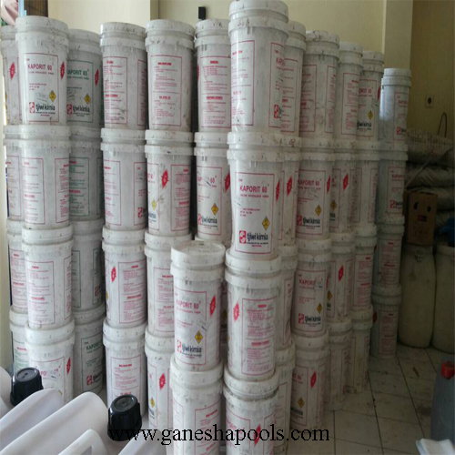 Kaporit bubuk dengan kadar 60 berfungsi sebagai penjernih air kola renang saat berwarna hijau keruh.